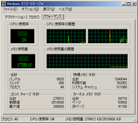 4800+相当の2.4G駆動も特に問題なさそうですが、エンコード時などはリテールのCPUクーラーで55度程度(ASUS PC Prove読み)。パイ104万は単独時で36秒、2個同時起動時で各38秒程度です。kumaoさんの「Athlon64 X2 4400+ 速攻レビュー」に較べてかなりスコアや温度が違いますが、そこはスキルの差ということで(^^;